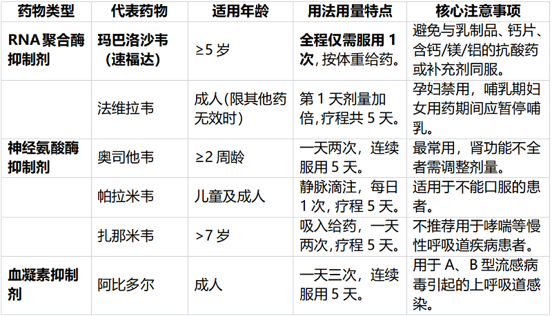 这是治疗流感的关键。我国目前上市的抗流感病毒药物主要有三类,需在医生指导下使用: